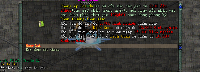 Sau đó người chơi sẽ được đưa đến bản đồ đặc biệt, tới chỗ Dịch quan để tiến hành thực hiện nhiệm vụ.
